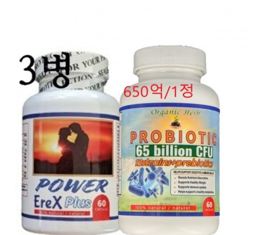 파워에렉스플러스 60정*3병+프로바이오틱 650억 60정*1병 (60대를 다시젊게,굵고 긴 최강20대)3달분특가